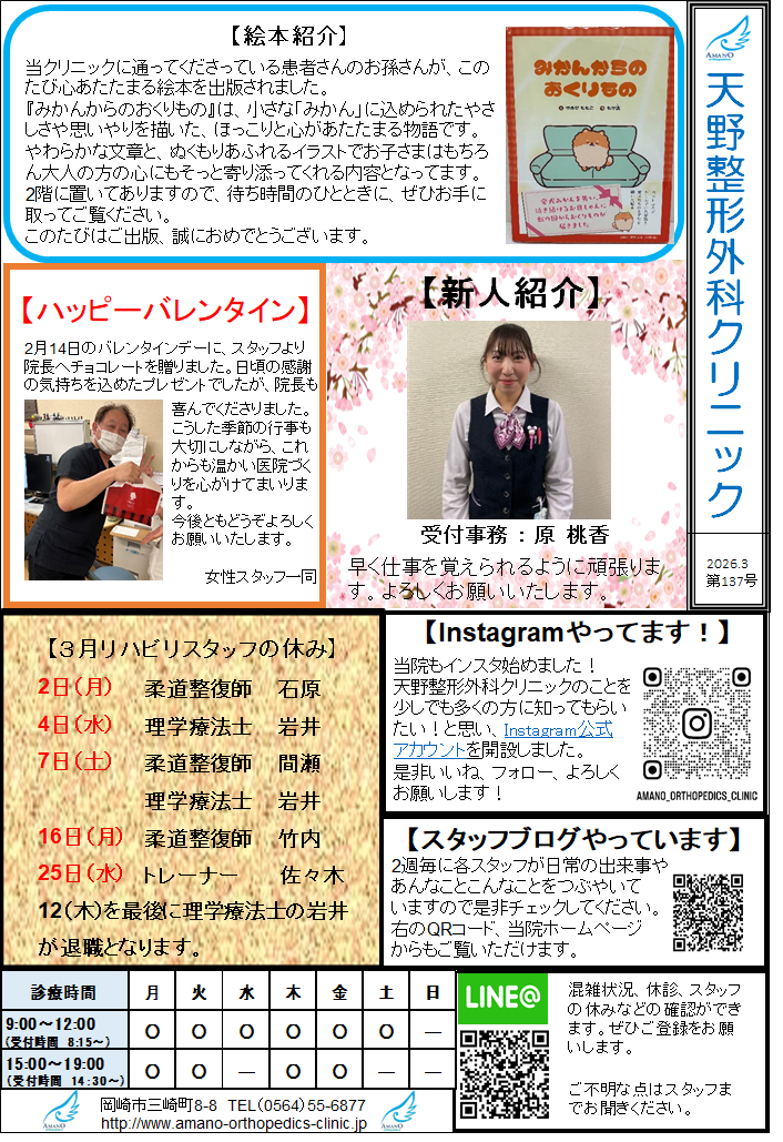 診療時間 9:00~12:00/15:00~19:00 水・土曜日 9:00~12:00 休診日:日曜、祝日、水・土曜午後